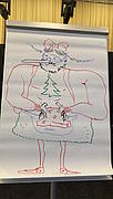 Abschließend entwirft er in einer Live-Illustration, die Ideen der Schüler*innen aufgreifend, einen Hauptcharakter aus dem Buch, was beim Publikum großen Anklang fand.