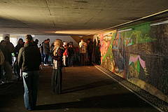 Prof. Riebe Maybach: "Kunst hat die Kraft, Dinge sichtbar zu machen, die oft unsichtbar bleiben. Wenn wir uns heute mit Themen wie Klimagerechtigkeit, Geschlechtergerechtigkeit, Diversität beschäftigen, begegnen wir komplexen Fragen, die sich nicht alleine durch Zahlen und Fakten erfassen lassen. Kunst schafft es diese Themen auch emotional begreifbar zu machen. Durch die Mittel der Kunst, durch Farben, Formen, Klänge, Bewegung ist es möglich anders an ein Thema heranzugehen. Die SchülerInnen haben gemeinsam mit Mario Moder und Moritz Danner genau das getan. Es ist ein großes, dichtes Bild entstanden mit ganz vielen spannenden Details, ein Lied mit einem eindringlichen Text und ein mitreißender Tanz. Die beteiligten KünstlerInnen öffnen uns damit Räume in denen wir uns nicht nur informieren, sondern auch emotional berühren lassen können."