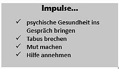 Für jeweils eine Stunde nahmen die Klassen an jahrgangsspezifischen Workshops und interaktiven Angeboten zu den Themen Mobbing, Körperbild und Essstörungen, Handy- und Internetsucht, Leistungsdruck und Prüfungsangst, Sucht, Depressionen, Suizidalität und (Existenz-) Ängste teil. Ziel war es, Wissen zu vermitteln, Verständnis zu fördern und konkrete Wege aufzuzeigen, wie Betroffene Unterstützung finden können.